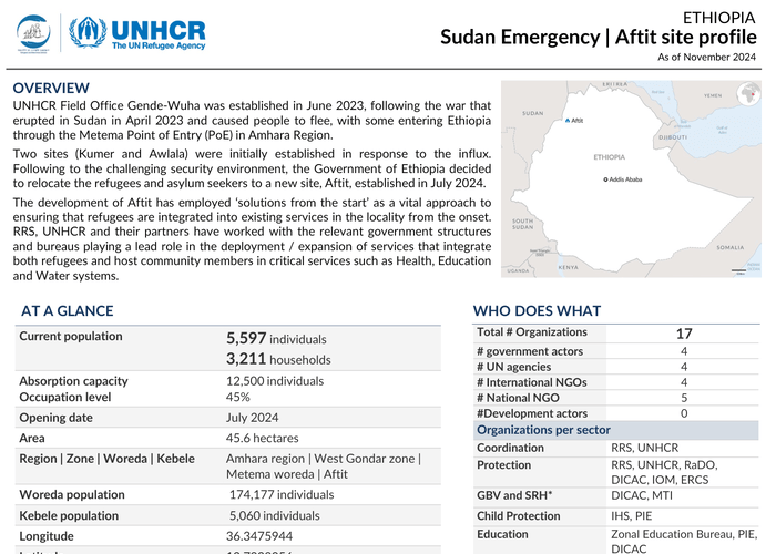 Ethiopia + 1 more OVERVIEWUNHCR Field Office Gende-Wuha was established in June 2023, following the war that erupted in Sudan in April 2023 and caused people to flee, with...